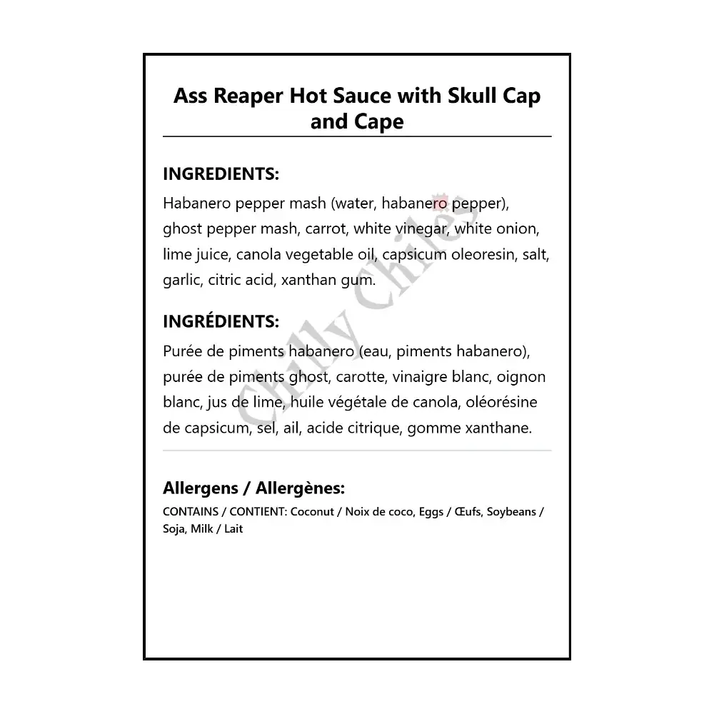 Ass Reaper Hot Sauce with Skull Cap and Cape—