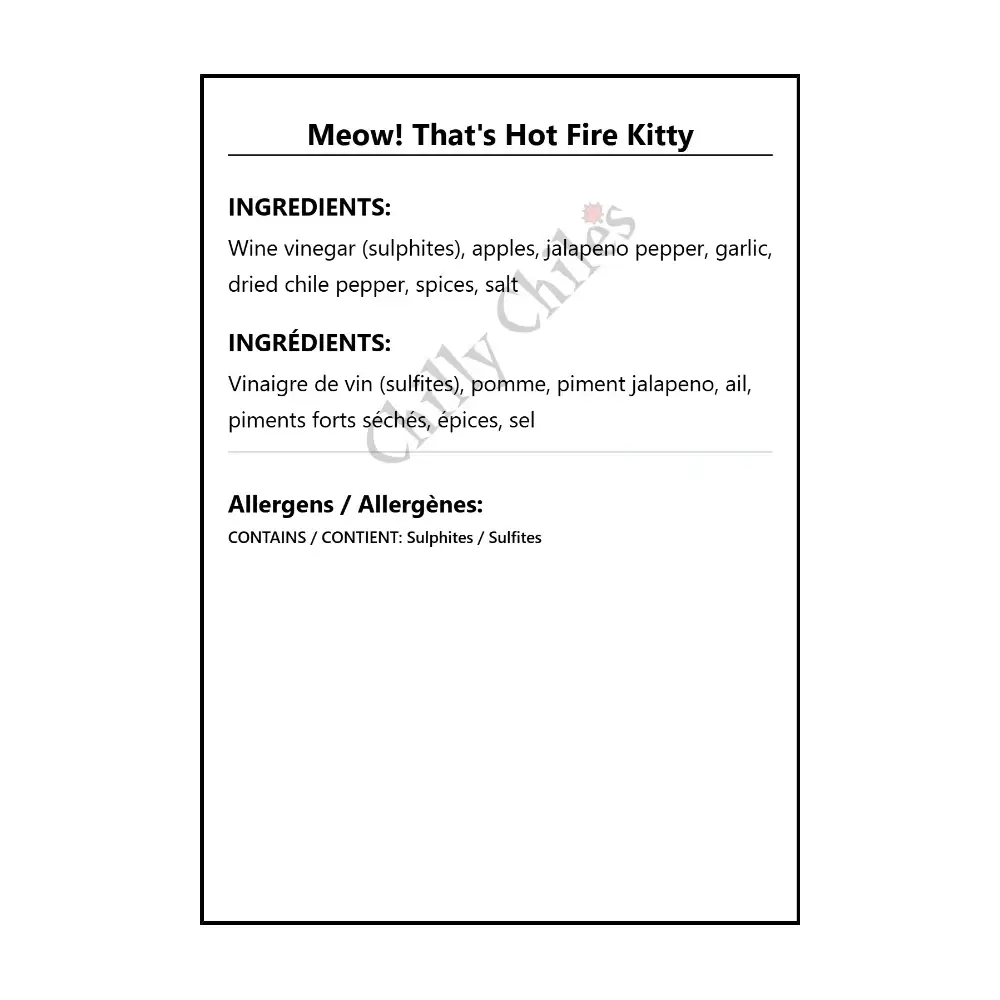 The sauce that started Meow! That’s Hot, and still our best seller. Medium heat, with the sweetness of freshly picked apples, the kick of Jalapeño peppers and garlic, and a touch of smokiness from imported Spanish paprika. Perfect for wings, BBQ, pizza, or just about any recipe that calls for hot sauce.
