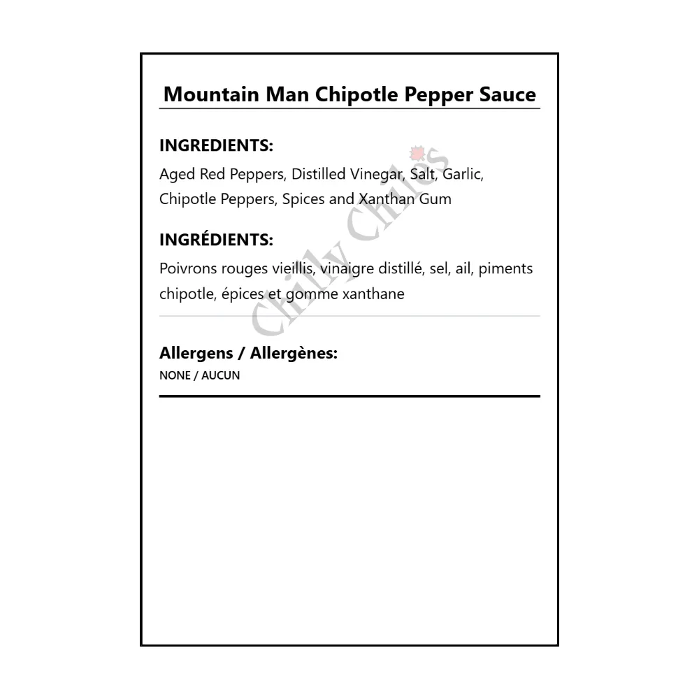 Ingredients: Aged Red Peppers, Distilled Vinegar, Salt, Garlic, Chipotle Peppers, Spices and Xanthan Gum.